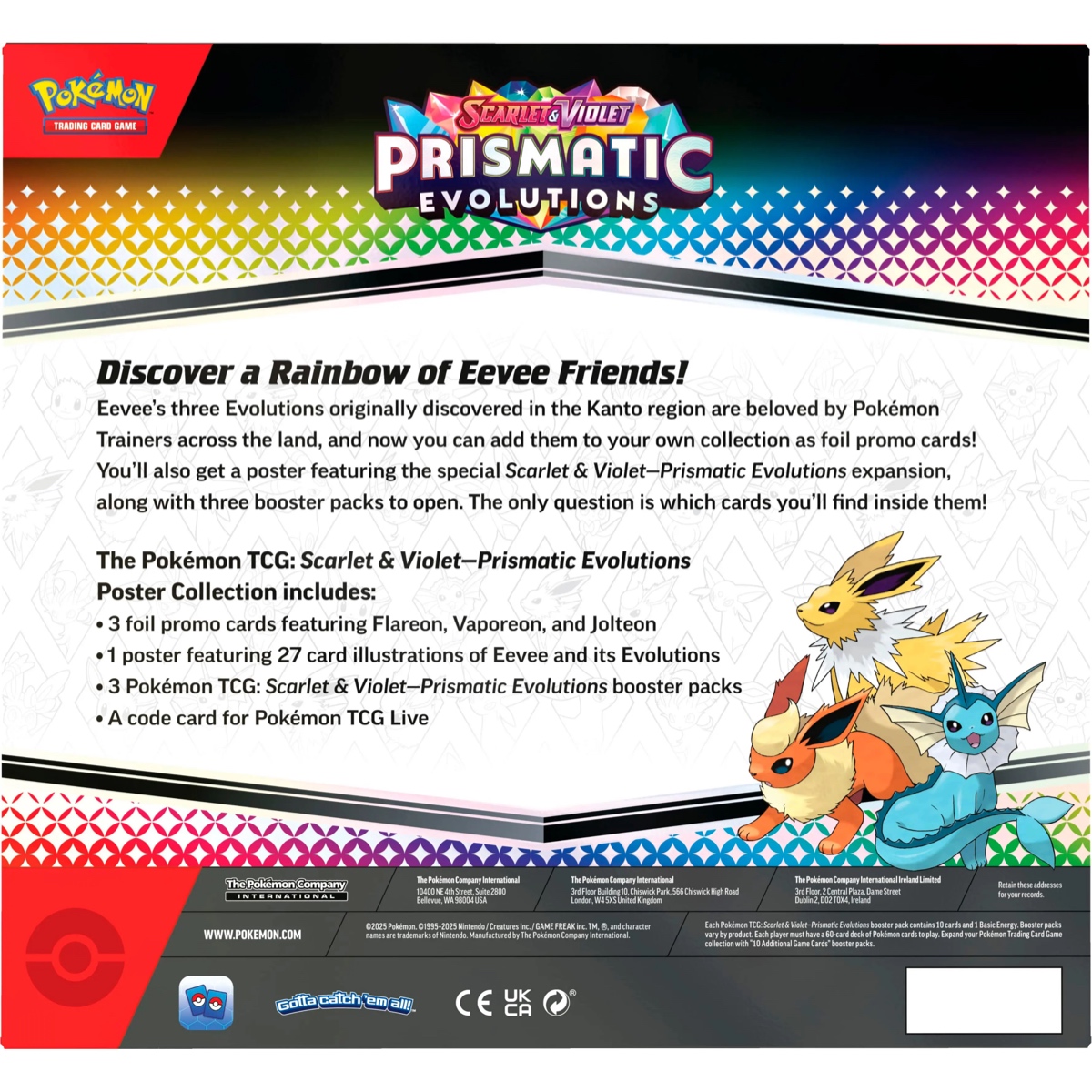 - Each Pokémon TCG: Scarlet & Violet—Prismatic Evolutions Poster Collection includes: